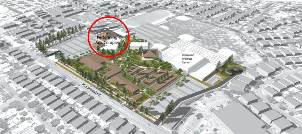 The City of Palo Alto’s overall development for updating Cubberley Community Center also includes plans to develop classrooms, art studios, fitness centers, and outdoor and sporting areas, which are still being considered and developed under the overall goal of continuing to serve Palo Alto’s existing communities and expanding its capacities to better serve all its residents. TheatreWorks and the City of Palo Alto are collaborating on a performing arts hub on the south end of the complex, with a health and wellness center plus other developments in the works for other areas of this 15-acre portion of the Cubberley complex. The Cubberley Community Center project includes acquiring seven acres from the Palo Alto Unified School District, to be combined with the eight acres of land on the site that the City currently owns, with plans to possibly renovate or replace the aging infrastructure. TheatreWorks will also initiate a fundraising effort to contribute funds to the capital development costs of the theatre complex.